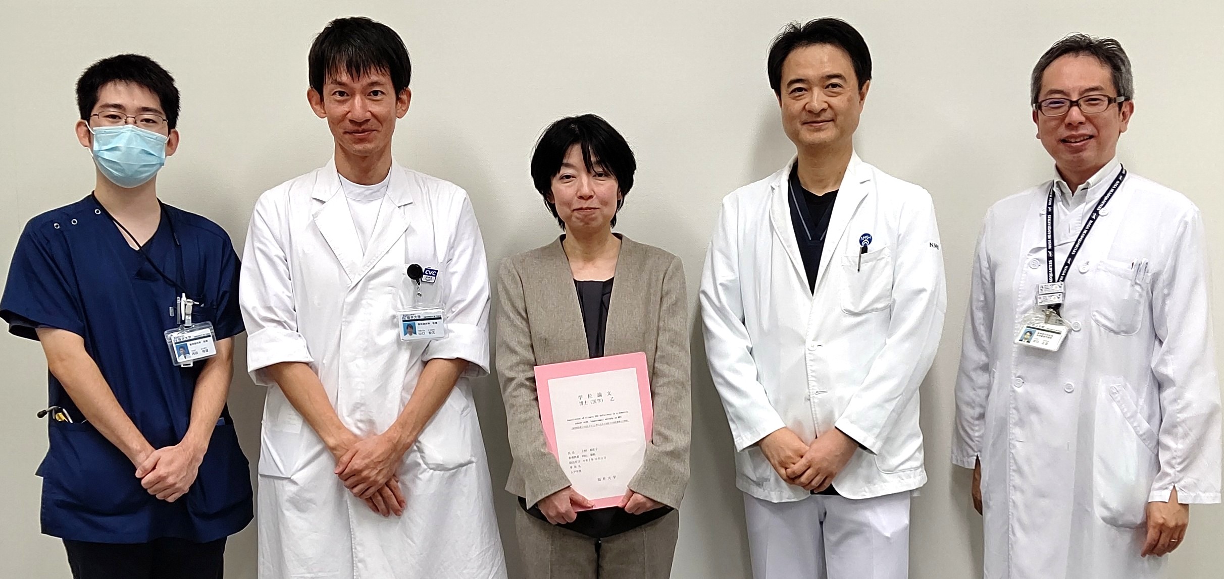 2026年3月23日に本学にて卒業式が執り行われ、当科の上野亜佐子先生が大学院を修了し、医学博士号を取得されました。こちらは、西山教授、井川教授、山口助教、内田先生とのお写真です。上野先生のご努力に心より敬意を表しますとともに、医学博士号の取得をお祝い申し上げます。今後のさらなるご発展をお祈りいたします。